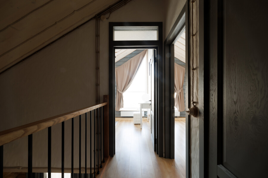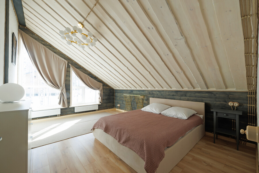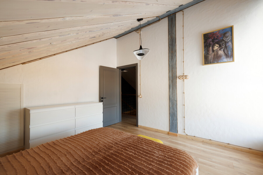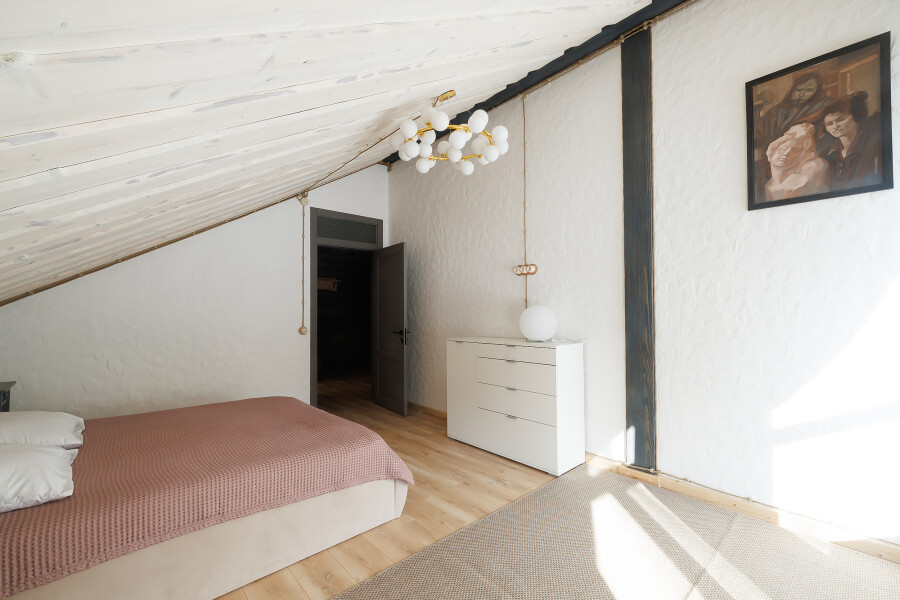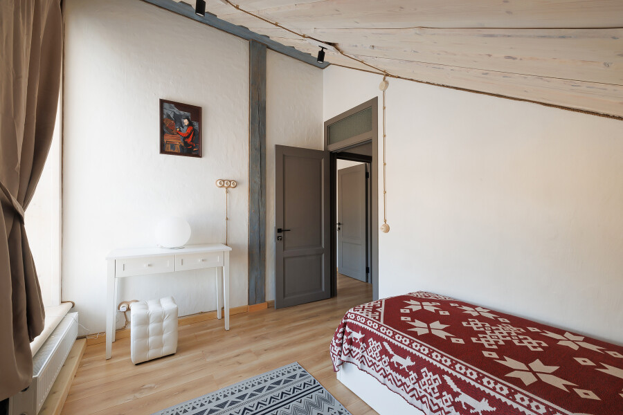 - Мебель: диван, зеркало, кровати односпальные, кровать двуспальная, прикроватные тумбочки, стол, стулья, шкаф